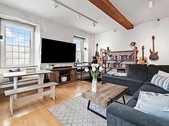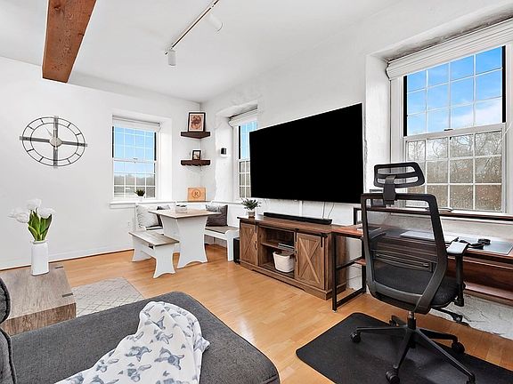 Water, water everywhere - scenic views from all windows in this corner condo in Dedham's Historic Stone Mill building. Nine-and-a-half foot high beamed living room ceiling with sunlight from every angle. Enjoy today's open concept with dining area in the living room as you look out on the river or waterfall. Remodeled kitchen and bath only add to the extra intrinsic value of this lovely home. Wake up with views of the water from the main bedroom which includes two large windows. Not to mention the lovely gardens in the spring and summer. Situated close to vibrant Dedham Square, and also, convenient to public transportation and highways. Tennis court, club house, indoor pool and hot tub are extra amenities. In-unit washer-dryer included. Pets are allowed with restrictions and Board Approval. Gas cooking, an elevator, and a professionally managed complex. Extra storage area located in the basement. Parking space No. 33. Offers due by 5pm on Sunday, January 8th.