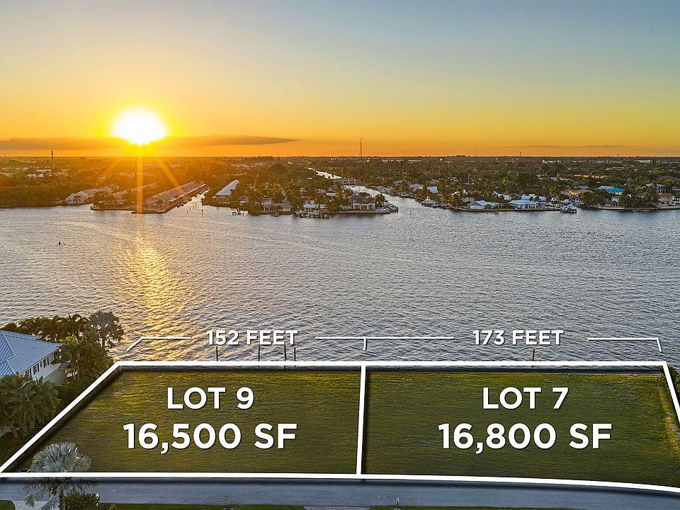 Come enjoy the warmth in TAX FREE Florida! Now offering the largest direct intracoastal lots in the beautiful seaside town of Ocean Ridge. These two, side-by-side lots, are ready to build with fully excavated virgin soil and are just two minutes from the ocean inlet. FEATURES:'' Oversized (16,800sf & 16,500sf), high and dry direct intracoastal lots'' '' Deep-water dockage''Just completed, state-of-the-art, Truvinyl, 8-foot-high seawall built at a cost of $1,000,000. Highest and strongest wall on the Intracoastal--no flooding here.''Just completed, oversized concrete pipe (18'') drainage system including new catch basins and backflow preventers servicing both lots and the street. ''Widest water views in the town of Ocean Ridge Lot 7--173 feet of frontage Lot 9--152 feet of frontage