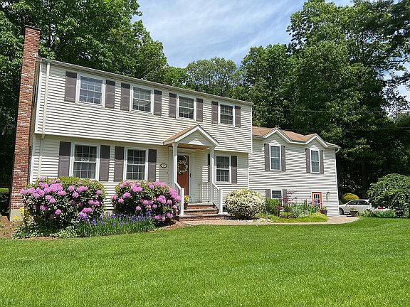 MULTIPLE OFFER SITUATION. ACCEPTING OFFERS THROUGH 8-1/20. Spacious 4-bedroom colonial with numerous high quality upgrades in sought-after Andover. Living room (currently used as dining room) has gleaming hardwood floors, crown moldings, and brick fireplace with pellet stove insert. Fully remodeled gourmet kitchen overlooks breakfast area and features beautiful quartz countertops, stainless steel appliances, recessed lighting and bar seating. Incredibly spacious family room with cathedral ceilings, built-in bar area, gorgeous Palladian window, propane stove, and French doors to backyard. Open floor plan on living levels allows for maximum flexibility. All bedrooms feature hardwoods and all baths are updated with tile flooring (master bath also has walk-through closet and skylight). Partially finished basement with playroom, newer high-efficiency laundry machines, workshop area with workbench, and ample storage space. The 1.36 acre partially wooded property is an amazing outdoor space with a large Trex deck and patio with newer Clearwater hot tub and barbecue/fire pit area, almost like having your own mini resort! Large shed for all of your lawn/gardening tools and toys (additional storage area in garage). Beautiful perennial gardens and hardscaped areas that have been meticulously maintained. Wide, paved driveway with extra gravel parking space and room for basketball hoop. Updated electrical panel with 200 amp service. Quiet cul-de-sac location in great family neighborhood. Minutes to highways, shopping, West Elementary (which will be new in 3 years) and Wood Hill Middle.