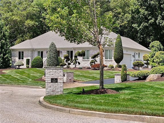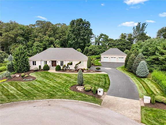 First time offered! Custom executive brick-front ranch located on a private cul-de-sac in desirable Western Cranston. Built and owned by a discerning car enthusiast, this one-of-a-kind home features an open floor plan, custom cabinetry throughout, and city water and sewer. The split-bedroom layout offers a private primary suite on one side and two additional bedrooms with a full bath on the opposite wing. The spacious kitchen and living areas flow seamlessly into a covered rear porch, overlooking a lush landscaped two-acre lot with inground sprinklers. A true car lover’s dream, the home includes an oversized 2-car attached garage plus a detached 1,200 sq ft heated and cooled garage with high ceilings and lift-ready space—ideal for housing up to 6 vehicles. Additional features include: Full walkout basement with expansion potential, Generac whole-house generator, Impressive front entrance, Parking for 10+ vehicles. A rare opportunity to own a custom home with unmatched attention to detail and garage space—ready for the next fanatical owner!