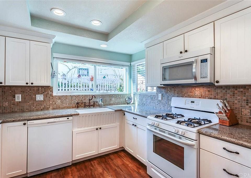 Welcome to one of the most charming homes for sale in Aliso Viejo today! This remodeled home will captivate you with it's decorator touches and reveals a true pride of ownership. It's rare to find a spacious condo with vaulted ceilings and dual pane windows that looks out onto a lovely and carefully planned garden. This exquisite garden boasts 2 apple trees, a kumquat tree, and a Meyer lemon tree. Plenty of room for a vegetable garden as well. The stunning kitchen has been remodeled and boasts white cabinetry, farmer's sink, copper brushed fixtures, recessed lighting, custom stone back splash, and granite countertops. Expanded entry to the dining area and the wood laminate floor throughout most of the home. The spacious living room enjoys afternoon sun and a beautiful stone fireplace. The upstairs master bath has been remodeled and features Quartz tile floors, shower with custom stone flooring, two vanities, and white wainscoting. The second full bath features a pedestal sink and custom light fixture to create a cheerful bathroom. Conveniently attached, immaculate parking for 2 cars. Neighborhood amenities include swimming pool, spa, tennis courts, community park. Glenwood Park offers a superb quality of life, make Aliso Viejo your home.