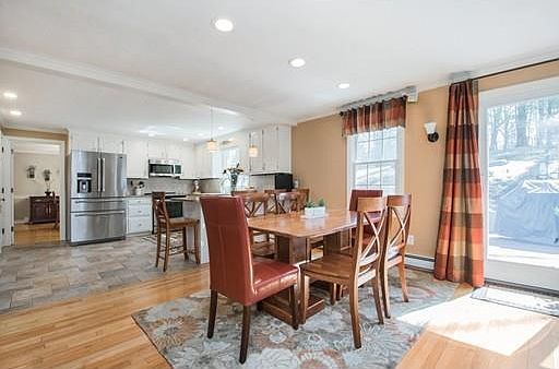 SIMPLY EXQUISITE! Every inch has been meticulously designed! This beautifully landscaped and renovated home features 11 rooms, 4 bedrooms, 3 bathrooms and 3 fireplaces located in a fabulous neighborhood on double cul-de-sacs. A spectacular kitchen opens to a cozy family room with a granite fireplace surround, custom cabinetry and an energy efficient Vermont Casting wood stove insert. There is a spacious first-floor bedroom and a full bath, gorgeous dining room looking out to a magnificent back lot and wonderful fireplace living room. The walkout lower level offers more space for entertainment and studying! Just a few fabulous value-added upgrades included: a high-end Buderus furnace, Anderson windows, Trex decking, extended driveway, and backup generator capable. See attached list for a complete list of upgrades. Located near beautiful Sandra Pond and Minuteman Park with scenic views, walking trails, fishing, and ice skating. DO NOT MISS THIS PROPERTY!