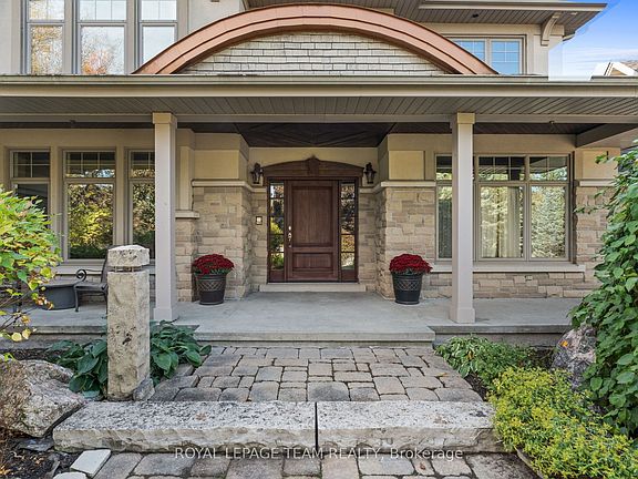 This 3x OCHBA award-winning stone & stucco estate is a rare, must-see home set on ~1.1 mature acres in centrally located Fallowfield Estates! Warm, timeless, and one-of-a-kind, it showcases exceptional craftsmanship, detailed millwork, refined ceiling features, and 5 bdrms & 5 baths. Highlights include a main floor primary suite, a versatile 2nd level with loft and 2nd laundry, a finished LL, and an oversized dream 3-car garage with 4th rear door & direct staircase to basement. A grand foyer introduces rich cherry tones, natural stone accents, and intricate millwork. The great room impresses with coffered ceilings, hardwood floors, abundant windows, and a striking two-way gas FP. The chef's kitchen features antique cream cabinetry, a cherry island, granite counters, stone detailing, radiant floor heating, glass uppers, pot-and-pan drawers, and an appliance garage. A bright breakfast nook and elegant dining room complete the main level. The main floor primary retreat includes a gas FP, WIC, and spa-inspired ensuite with radiant floors, stand-alone tub, rainhead shower, and travertine counters. A well-positioned laundry room with pantry storage & pwdr room, a den with custom built-ins, and a functional mudroom enhance everyday living. Upstairs, the loft provides flexible living, while three spacious bdrms offer excellent closets & private or shared ensuite access. The finished LL features a large family room with built-ins & electric FP, full bath, gym/flex room, 5th bdrm, and generous storage. Outside, the heated saltwater pool with slide, diving board, pool shed & custom cover anchors a private oasis surrounded by stone patios, lush landscaping, and multiple seating areas. Additional features include irrigation, a 20' x 14' outbuilding (2013), and a new Generac home generator (2024). This exceptional property is truly a must-see! 24 hrs irrevocable on all offers. Some photos virtually staged.
