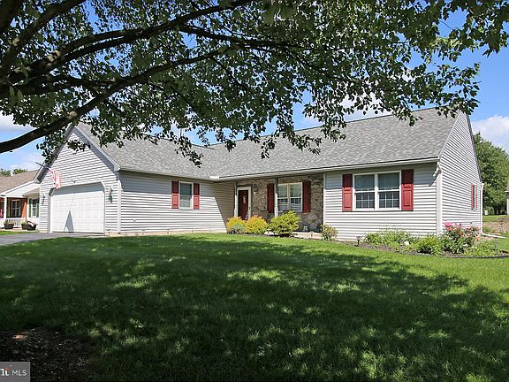 Welcome home to Myerstown's premier 55+ community! This home offers an updated kitchen with stainless steel appliances, a formal dining area, a living room with cathedral ceilings warmed by a gas fireplace. Three bedrooms and two full bathrooms allow space to spread out and set up a home office or craft room. The full size basement with exterior access allows for plenty of extra storage. Enjoy the seasons on your enclosed patio, or sit and enjoy the evening on your front porch. The yard is very nicely maintained and not too large to take care of. Have the piece of mind of a new roof with a fully transferable 50 year warranty. Sewer and trash are covered in your land lease, as well as access to the large community center and lakeside area. Brand new Refrigerator in September 2024, and a 1 year warranty included for you piece of mind. Don't miss your opportunity to see this one!