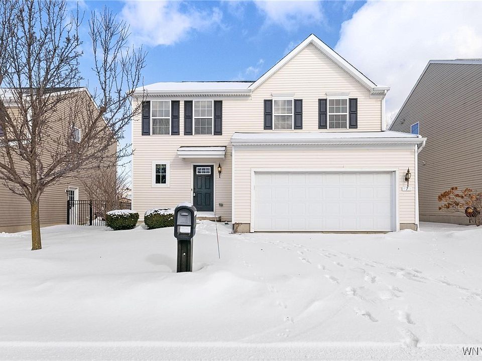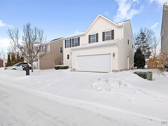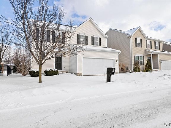 Welcome Home to this beautiful 3 bedroom 2.5 bath home located in a quiet village neighborhood in the Hamburg School District. Enjoy the comfort of central air conditioning with spacious room sizes and open floor plan. The first floor offers a very nice entry foyer with half bath and closet. The large living room with lots of natural light and gas fireplace is open to the eat in kitchen that features an island and large pantry. Step outside through the sliding glass door to a lovely stamped concrete patio and private back yard great for entertaining or just enjoyine the outdoors. On the second floor the owners suite has a private bath and large walk in closet along with two good size bedrooms and another full bath. This home is move in ready. Showings begin immediately! All offers are due 2/19/26 @ 12:00 P.M.