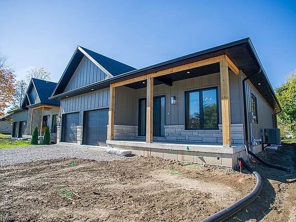 Introducing 7 Scott Drive - a stunning fusion of refined craftsmanship and contemporary comfort, ideally situated in the vibrant community of Port Dover. This newly constructed custom bungalow delivers almost 2,000 sqft of elegant main floor living, carefully designed with premium finishes and thoughtful touches throughout. From the curb, the exterior immediately impresses with its board and batten design enhanced by stone accents, while the inviting front porch sets the perfect spot to start or end your day. Inside, soaring windows and a striking stone fireplace anchor the spacious living room, filling it with warmth and natural light. The gourmet kitchen is sure to delight with sleek quartz counters, a generous island, and a "hidden" walk-in pantry. The seamless connection to the covered back patio creates an ideal flow for outdoor dining or relaxed evenings under the stars. An oversized dining area-stretching more than 22 feet-ensures you'll always have space for gatherings of every size. Convenience blends with style in the laundry/mudroom off the garage and the elegant powder room for guests. Retreat to the serene primary suite, featuring a large walk-in closet and a spa-like ensuite complete with dual sinks and a luxurious walk-in shower. Two additional bedrooms, each with walk-in closets, share a well-appointed Jack & Jill bathroom, making the layout as practical as it is beautiful. The lower level offers endless possibilities with 9' ceilings and large windows. Located just a 15-minute walk from downtown Port Dover and the sandy shoreline, this home offers more than comfort - it offers a lifestyle. From boating and beaches, to local dining and boutique shopping, everything you love about Port Dover is right at your doorstep.