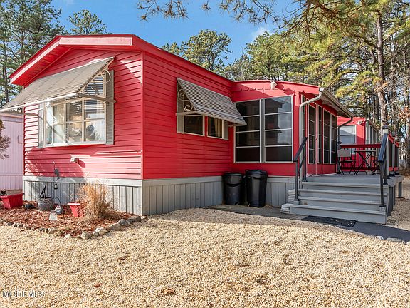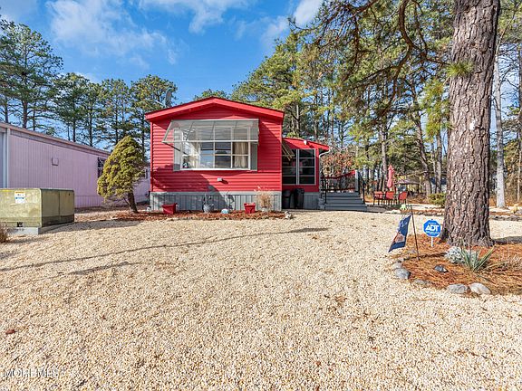 Pine Ridge Crestwood Mobile home in adult community with 2 bedrooms, 1 full bath, Living room, Dining room, Den, Kitchen all located at the end of a quiet cul-de-sac is your own little slice of paradise, surrounded by a wooded area for privacy. Home has been updated with 2 bump outs and fully landscaped.  New driveway and side walk.  Monthly association fee includes property tax, association fee, snow removal, garbage pick up, lawn maintenance, club house, community bus. Trip to A/City & much more! Home is minutes away to seaside, shopping stores, mall, restaurant, medical.