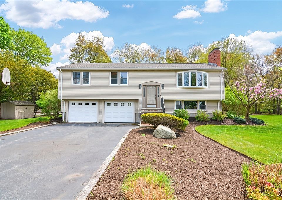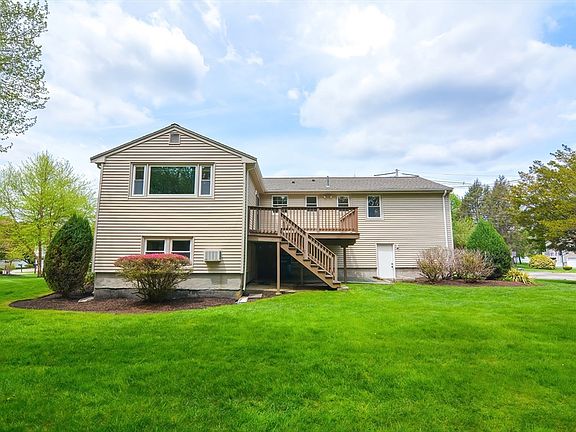 Fabulous location! Lovingly maintained raised ranch sits on a large corner lot in a desirable Canton neighborhood. The home seamlessly blends functionality with charm, offering comfortable living and entertaining. Featuring an open concept living and dining room, kitchen with white cabinets and solid surface countertops and a huge sundrenched family room with slider to the deck and back yard. Large primary bedroom includes ensuite half bath. Two additional spacious bedrooms and a full bath complete the main level. The lower level includes a huge fireplaced den, office/bonus room, full bath and laundry room as well as access to the 2-car garage. There are hardwood floors under carpets in bedrooms and living room. Large yard and lovely landscaping complete this great home! Convenient to town center and train (1.4 mi) and elementary school (0.6 mi). Charm, Practicality and Potential! Explore all this fabulous property has to offer! Don't miss out! --Showings begin at OH Sunday, May 19.