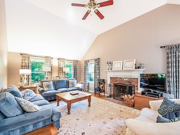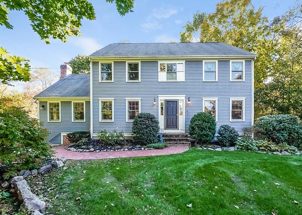 Tucked away at the end of a long driveway, a classic center entrance colonial. Walk to commuter rail, health club, skating pond, Whitney Woods and Glastonbury Abbey. Convenient to area beaches and Rte. 3A. Once inside you will be impressed with all the space. Tastefully decorated formal living room with wood burning fireplace, dining room, den and updated kitchen, half bath with laundry on first floor. Second floor has master bedroom ensuite with additional three bedrooms and full bath. Hardwood floors throughout most of home with warm wall to wall carpeting in bedrooms. Finished basement adds great bonus space. Home has central air throughout. Located in coveted East School district. If you are looking for privacy and convenience this home has it all. Enjoy all that Hingham has to offer. Great value in this home.