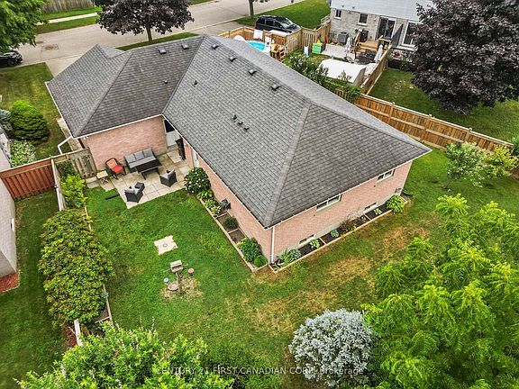 Welcome to this charming 3+1 bedroom brick bungalow, perfectly situated in a convenient St. Thomas neighbourhood close to everything you need and just 16 minutes to London. Walking distance to Tim Hortons, the Elgin Mall, grocery stores, medical offices, parks, and transit. In lovely condition and thoughtfully maintained, this home offers a bright and inviting main level with an eat-in kitchen featuring a reverse osmosis water filter, a spacious living and dining area, and three comfortable bedrooms including a primary with ensuite and walk-in closet. The main floor also features a second full bath, main floor laundry, and is entirely carpet-free, making it easy to maintain and move-in ready. The lower level provides even more versatility with a fully finished in-law suite complete with its own kitchen, family room with gas fireplace, a fourth bedroom, and a third full bath with a relaxing Jacuzzi tub. There is also plenty of storage, and a cold room. Enjoy your morning coffee on the covered front porch or host family and friends on the private back patio with a natural gas hookup for your BBQ. The fully fenced yard is beautifully landscaped and the double garage and concrete driveway offer parking for at least six vehicles. This well-cared-for bungalow combines comfort, functionality, and a great location, making it easy to settle in and feel right at home.