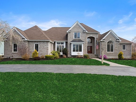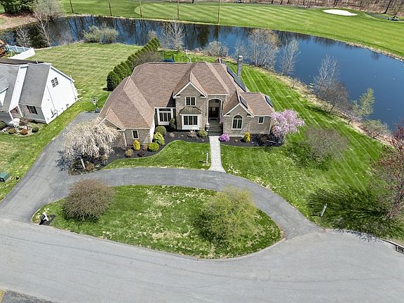 Timeless Design Meets the Course of a Lifetime. Elegantly positioned along the 12th hole at Highfield Country Club, this brick-front masterpiece offers an exceptional blend of architectural grandeur with modern sustainability. A sweeping open layout and soaring cathedral ceilings define the main living space, while oversized windows flood the interiors with natural light, water, and fairway views. The sensational 1st floor primary suite offers a serene multi-room retreat, while the upper level features generously scaled bedrooms & refined, flexible living spaces. The walkout lower level is equally impressive, featuring a full second kitchen, elegant bath, bonus game room, & spacious fifth bedroom—ideal for long-term guests. A stately circular driveway, 3-car garage, and meticulously landscaped grounds enhance the home’s refined curb appeal. Completed by a 2023 geothermal system & fully owned solar, this is a rare offering where elegance, comfort, and efficiency converge seamlessly.