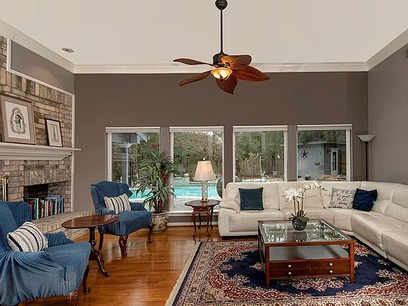 Remodeled home on a private, beautifully landscaped lot in Panther Creek! Tucked away in a quiet neighborhood with close proximity to Market Street, The Woodlands Mall and I-45! 3 car garage with epoxy floors and extensive built-in storage (3rd bay has fully insulated attic with Versalift system for easy access). This low maintenance home allows you to travel with ease: Whole house 22 kw Generac generator, backyard and front courtyard are lock and leave, wifi smart security cameras, irrigation system, thermostats and water leak detector! Open concept island kitchen with quartz counters, Viking 6 burner gas cooktop, and abundant cabinets with pull-outs overlooks the breakfast room and den with dual sided fireplace; owner's retreat down features a screened-in porch, his & hers closets, Japanese soaking tub, and walk-in shower; upstairs library with custom shelving; large multi-purpose room; Gorgeous pool and spa with waterfalls, outdoor shower, pool bath and potting shed.