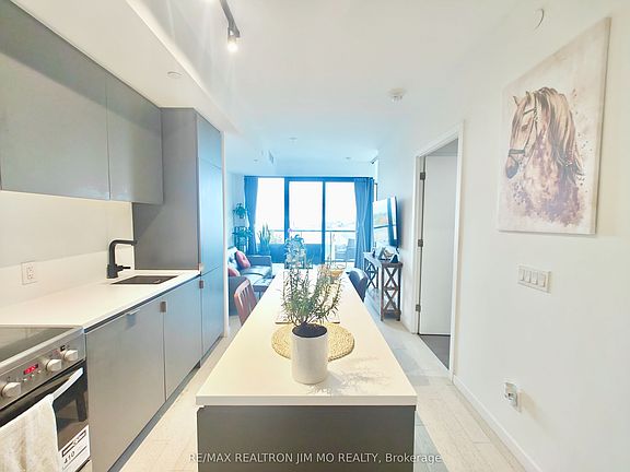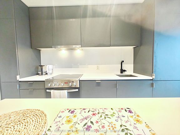 Welcome to the highly sought-after Queensway Park Condo, a boutique residence, situated in the heart of a vibrant community. This sun-drenched, south-facing 2-bedroom, 1-bathroom unit boasts a functional, open-concept layout with lofty 9-foot ceilings and floor-to-ceiling windows that offer stunning, unobstructed views of the adjacent park. The modern kitchen is perfect for entertaining, featuring a center island, quartz countertops, and sleek integrated stainless-steel appliances.Residents enjoy an array of premium amenities, including a state-of-the-art gym, a rooftop terrace with BBQs and fire pits, a party room, and a children's play area. Directly across from Queensway Park, you have immediate access to tennis courts, a skating rink, and playgrounds. This prime location is minutes from Costco, Sherway Gardens, public transit, Mimico GO station, and major highways (QEW/Gardiner), ensuring a quick and easy commute to downtown Toronto or the airport.