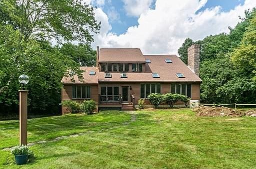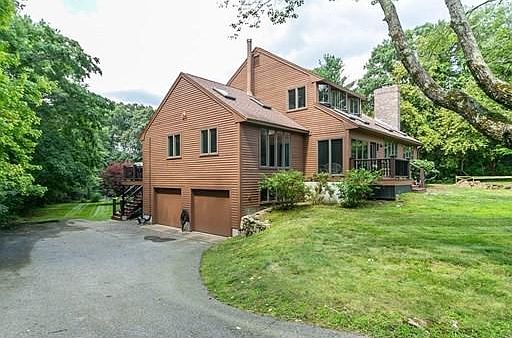 Located on one of Sherborn's most scenic side streets on the east side of town, close to Farm Pond, & Rocky Narrows, this architecturally designed contemporary style home is filled w/natural sunlight. Highlights include: cathedral ceilings, over-sized windows, 1st floor home office w/custom built book cases, & an open floor plan. The relaxing enclosed porch flows into the main level which features a formal living room w/fireplace, formal dining room, home office, large updated kitchen w/eat-in area, & family room w/wood burning stove & French doors to back deck. The 2nd floor offers a large master bedroom w/walk-in closet & en-suite, two more bedrooms, the 2nd full bath, & laundry room. The lower level offers enjoyment for the whole family a cozy den or second home office, a larger game room or family room, & an unfinished workspace. Outside youll find a 2-horse stable & mature landscaping, all on a private, level acre lot close to the public schools. Showings begin Friday