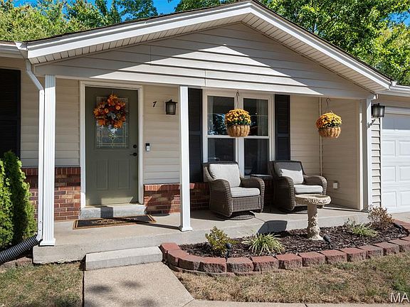 This inviting 3 bedroom, 1.5 bath home is nestled on a cul-de-sac and offers great curb-appeal and a spacious, level, fenced backyard! The living room exudes charm and welcomes you with hardwood flooring and a beautiful gas fireplace. Picture cooking in the fully-equipped kitchen with oak cabinetry, new hardware, new faucet, some stainless steel appliances, tile backsplash, ceiling fan, pantry and breakfast room. A special four-seasons sunroom boasts 200 square feet of extra living space and features vinyl plank flooring, ceiling fan, heating/cooling and deck access! Hardwood flooring leads to the primary bedroom, a relaxing retreat with slider closet, luxury vinyl plank flooring, ceiling fan and a half bath. Two other bedrooms with vinyl plank flooring, ceiling fans and slider closets share the updated full hall bath with adult height vanity, tub/shower combo and ceramic tile flooring. The amazing finished lower level is sure to please, complete with a recreation room, exercise room, laundry and storage. 2-car heated garage! Vinyl siding with enclosed soffits and fascia make maintenance a breeze! Located in the heart of St. Peters close to area shopping, restaurants, and schools. Must see!