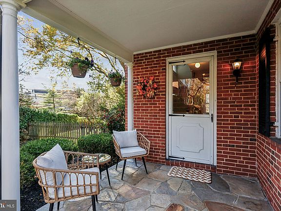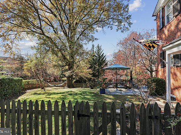 Set on one of Homeland’s rare cul-de-sacs, quietly away from cut-through traffic, this semi-detached all-brick home offers a sense of calm and privacy not often found in the neighborhood. The unusually large lot creates a true backyard oasis, welcoming you from the moment you arrive. The main level features a gracious living room with a wood-burning fireplace, classic moldings, and hardwood floors, opening to a bright dining room and a beautifully updated kitchen with stainless steel appliances and a farmhouse sink. The interior flows naturally to the backyard, where a generous patio provides the perfect setting for morning coffee, weekend gatherings, or alfresco dining under the stars. The outdoor space unfolds in distinct garden rooms, areas for sitting and conversation, a spot for dining, and space to stretch out in a hammock under the trees. The lawn offers room for play and gardening, with plenty of space to throw a ball for your four-legged friend, and a detached garage adds storage and convenience. Upstairs are three comfortable bedrooms and a hall bath filled with natural light. The third bedroom includes built-in bookshelves, making it well suited as a home office, study, nursery, or reading room. The lower level has been reimagined with comfort and flexibility in mind, featuring new flooring, a full bath, and a well-designed laundry room. The spacious main room is large enough to accommodate both a cozy media area and a play space, making it a natural gathering place for movie nights, rainy afternoons, or quiet evenings at home. Updates include a Weil-McLain gas boiler and high-velocity central air, blending modern comfort with the home’s enduring architectural character. Welcome home to a residence with room to live fully, to gather with ease, and to appreciate the beauty of the seasons ahead.