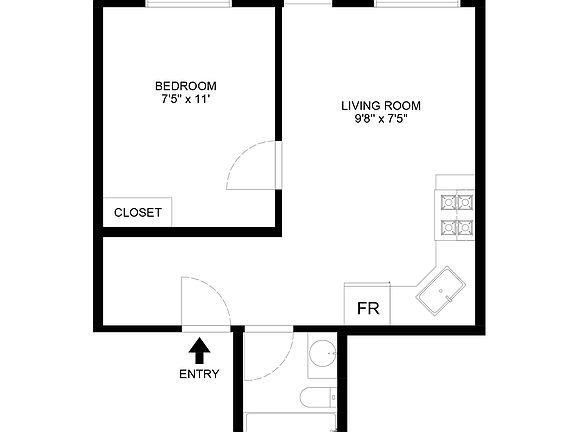 Bright 1 Bedroom 1 Bath featuring an open kitchen with Private outdoor space.