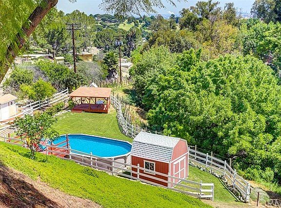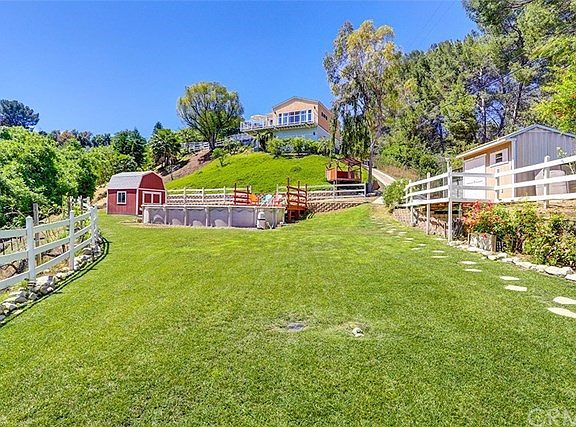 Unique, extensive private mini-estate with bright, open floor plan, new 1,036 sq ft addition in 2011, features include beautiful unobstructed pastoral view from almost every room, extensive (@600 sq ft) basement. Urban agriculture and entertainment center with 40 Cabernet Sauvignon (5year old) grape vineyard, 28 fruit trees, Upgraded with tankless water heaters, Thomasville cabinets, large pantry, two heating and air systems, all-block retention walls, wrap around deck with glass balcony railings for light and airy outdoor living, as well as three freestanding storage buildings, Wired for Sensaround sound in new construction. Two family rooms and designated computer area. Two fireplaces. Wired for auxiliary power generation. Near country club, tennis and golf and the horse training facility with a direct bridge to the horse trail. Large enough for four or more horses. Can be gated for unique, very private urban estate with quick access to freeways.