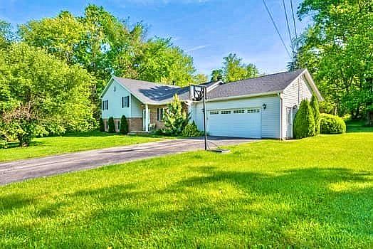 This impressive home on over 1/2 an acre boasts multiple levels, offering ample space for comfortable living. Equipped w/ a sparkling pool in the level rear yard, this home provides the perfect setting for leisure & relaxation. Spill out onto the large 24x16 rear deck w/ built-in seating for additional entertaining space. The presence of 2 fireplaces in the wood-beamed living room & En-Suite master bedroom, adds a touch of elegance and warmth, creating cozy nooks for gatherings & quiet evenings. The 4th bedroom situated off of the great room, can double as flex space. Entertainment is taken to the next level w/ a sprawling game room, complete with a bar is ideal for hosting fun-filled gatherings or enjoying some downtime. The expansive great room, adorned w/ skylights, bathes the entire space in natural light, creating a bright & inviting ambiance. New carpet & paint. Perfect for both daily living & entertaining, this home strikes the perfect balance between luxury & comfort.