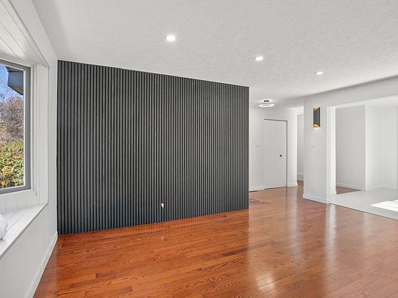 Open floor planStylish feature wallBig private peaceful backyardDetached garageSixties inspired kitchenQuartz countertopsNew backsplash