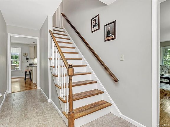 The moment you turn onto this cul-de-sac street with 4 homes, you will feel the tension leave and the tranquility begin. Pride of ownership are the words to describe this 4 bedroom, 2.5 bath Colonial/Cape. A neutral, bright hallway greets you upon entering. Hall flooring is tile, there's a skylight and a closet with plenty of storage space. Sashay to the right and the formal living room has gleaming, recently redone hardwood floors, as well as the dining room. Meander through to a very functional kitchen with abundant counter space, cabinets and recessed lighting. Relish the under-cabinet lighting and the open floor plan allows for entertaining in the family room as well. A fireplace, lovely mantle and French sliders give way to an over-sized deck which overlooks a pretty yard nestled among mature trees. The mudroom, 1/2 bath and laundry are conveniently located through a second French door off family room. The 4th bedroom, currently being used as a music room, can also be a home office and there's a full bath located right outside room. All bedrooms boast hardwood floors, and the Master Bedroom upstairs has its own door to a balcony. Sit out and relax on those beautiful summer nights The lower level is tastefully finished with its own entrance and adds over 1,000 sq ft for your enjoyment. 2-car attached garage, new garage door opener (2019, newer driveway (2016 and much more. This home is perfect in every way... make it yours today