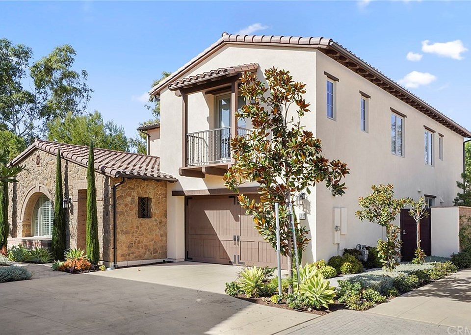 This private and beautifully upgraded La Vita Plan 1 sits on a premium corner lot over 8,000 sqft - the largest lot size for La Vita Plan 1. First floor features main level bedroom with en-suite bath, enclosed den perfect for a home office, open concept Great Room in the main living area connects, gourmet kitchen, formal dining, family room, and covered California living room. Gourmet kitchen features large Quartz countertop island, stainless steel appliances, including built-in refrigerator, and 6-burner cook top, all tied together with a clean and crisp backsplash. Upstairs you will find Master suite with en-suite Master bathroom. Master bathroom features dual vanity sinks, walk-in shower, soaking tub, and walk-in closet with custom built-ins. There are also 2 additional secondary bedrooms each with their own en-suite bath, convenient second floor laundry, and a large loft. Enjoy designer upgrades including gorgeous tile and wood flooring with carpet on the stairs. Enjoy all that California has to offer with extra large covered California living room with fireplace and expansive backyard with easy maintenance yard. Perfect space for entertaining with plenty of outdoor seating, kids to play, even plenty of space to play sports in the backyard! The best part is that your home can be enjoyed in privacy with views of trees. Bonus easy walking distance to Orchard Hills K-8! Enjoy access to resort community amenities including multiple pools and parks, local shopping and dining.