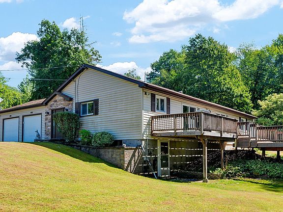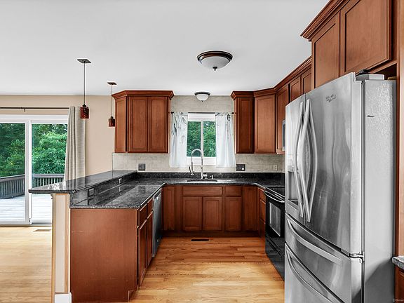 Welcome to this stunning 3-bedroom, 2.5-bathroom home spanning 2,330 sq ft, with an additional 1,500 sq ft of beautifully finished lower level, nestled on a generous .89-acre lot. Gleaming hardwood floors flow throughout the main level, creating a warm and inviting atmosphere. The heart of the home is the eat-in kitchen, featuring a breakfast bar, granite countertops, and abundant cabinetry, perfect for culinary enthusiasts. Adjacent, the dining room offers seamless access to a spacious back deck, ideal for entertaining. The adjoining living room is bathed in natural light with a slider to the deck, enhancing indoor-outdoor living. A versatile family room or office with French doors and a large bay window provides a cozy retreat. The spacious foyer welcomes you, leading to a large primary bedroom suite with a luxurious full bath boasting, boasting a granite double vanity. Two additional bedrooms, a well-appointed common bathroom, and a parquet-floored laundry room complete the main level. The expansive walkout lower level includes two distinct areas, one with a wet bar, perfect for gatherings. Outside, enjoy a partially fenced-in yard, a storage shed and two decks-one offering breathtaking Western views. Additional features include a 2-car attached garage, generator hookup, updated electrical and central air, ensuring comfort and convenience in this exceptional home. Motivated Sellers!