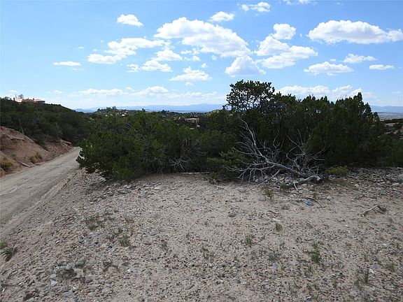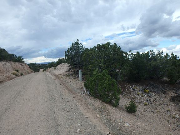 Beautiful, Pristine acreage off San Rafael. This triangular piece is covered with Pinon, Cedar, and different bushes. Ridges are hidden throughout and with existing roads going down two sides of this triangular lot, there are many points of entry sites. Over 700 feet down San Rafael and over 580 feet along Tano Trail.