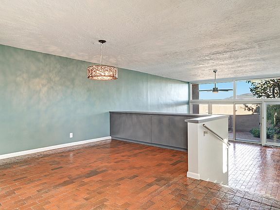 Historic La Luz compound end unit with views from the kitchen, living room and Primary Bedroom! Antoine Predock's adobe and concrete compound is a fantastic piece of history, and you can live here. Lovingly updated by the current owners-this beautiful townhome is ready for you to move in. 3 bedrooms plus an office, 2 gorgeous baths, brick floors throughout! The pictures show the incredible views of the Bosque and the Sandias. The home has courtyards in the front and rear. The HOA includes a wonderful pool and tennis courts.