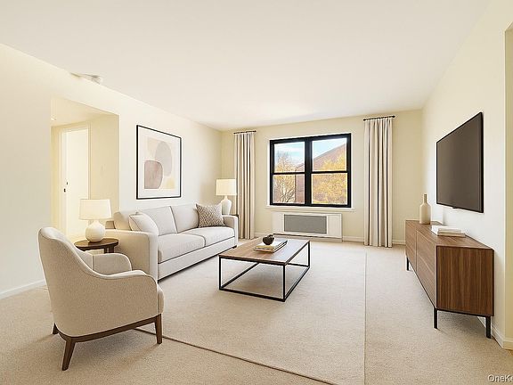This top-floor one-bedroom, one-bathroom apartment offers open views of the Throgs Neck Bridge and community, a spacious bedroom with abundant closet space, and a vanity sink conveniently located outside the bathroom. The interior features full carpeting with hardwood floors underneath, and additional perks include a dedicated parking space, in-building laundry, bike storage, and basement storage. Families will love the playground directly behind the building and the school bus stop right in front, while commuters enjoy a 2-minute walk to Little Neck LIRR (Zone 3) with direct service to Penn Station or Grand Central. Residents have access to community amenities including an Olympic-sized pool, kiddie pool, dog run, basketball and volleyball courts, and a community room, plus exclusive Great Neck Park District privileges. Maintenance includes taxes, heat, hot water, water, landscaping, snow and trash removal, and pool passes. With top-floor views, prime location, and ample storage, this home blends comfort, convenience, and lifestyle.