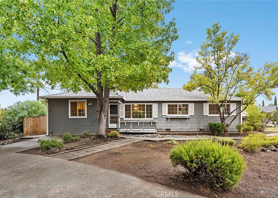 This home is ready for someone with vision to bring it to life! Situated on a large corner lot with a circular driveway and beautiful mature landscaping, this property offers great curb appeal with its charming white shutters and established trees. Inside, you’ll find a spacious floor plan featuring a large living room with a brick fireplace and space for a dining area. The kitchen has a fun retro vibe with plenty of room to reimagine your dream space. Just off the kitchen is an additional room that would make a wonderful formal dining area, family room, or even a home office. On the opposite side of the home are three bedrooms with hardwood floors and a full bathroom. The huge backyard offers endless opportunities—create garden beds, add a play area, or design your ideal outdoor entertaining space. Located near In Motion Fitness, schools, and parks, this home combines a prime location, wonderful lot and a great layout. With a little updating, it will truly shine!