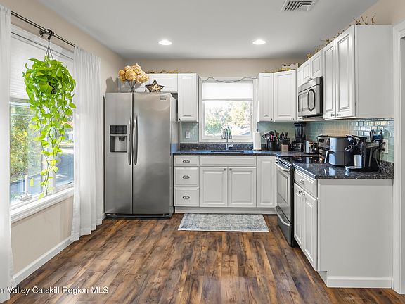 Discover this impeccably maintained light-filled and inviting 2-bedroom, 1-bath home with exclusive access to Kinderhook Lake. This property boasts a spacious heated 3-bay garage, perfect for transforming into more living space or storing all your favorite toys. Enjoy year-round comfort with a high-efficiency heating system and central air conditioning, along with a spacious backyard and two separate electric services. Located in an unbeatable area, you're just a quick stroll from Kinderhook Lake and only minutes to Kinderhook village, 15 minutes to Chatham, 20 minutes to Hudson, and 25 minutes to the Capital Region. Plus, it's conveniently 2.5 hours from both NYC and Boston! Don't miss out on this incredible opportunity—join us for an Open House on Saturday, October 11th, from 12 noon to 2 PM. Do not miss this special gem - it won't last long