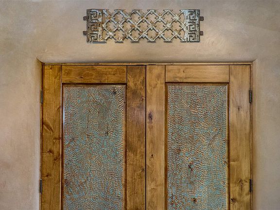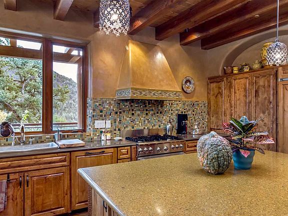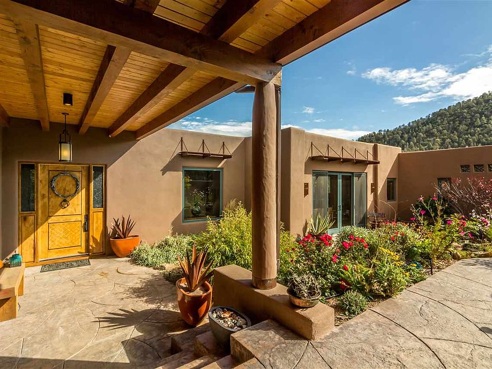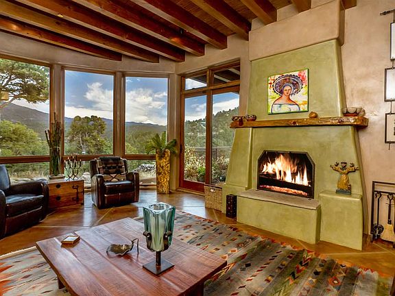Come take a look at this custom built, Jay Bush designed home. Located on five acres in the southeast foothills near Old Santa Fe Trail and La Barberia Road. Stunning easterly views of the Pecos Wilderness. Only ten years old and well laid out with great separation between the bedrooms for privacy and entertaining. The kitchen, dining and living area are classic open concept which makes for graceful entertaining or family living. Three bedrooms, three baths and a separate bonus room that could be an office or many other uses. The master suite boasts a heated Japanese soaking tub and plenty of space. With three fireplaces and radiant heated floors you'll be cozy warm all winter long! The formal outdoor spaces include a front courtyard, covered portals and a Zen garden that can be enjoyed from inside or outdoors. The mature landscaping includes Japanese maples, lilacs, spruce trees, roses, herbs and a veggie garden. Last but not least is the oversized two car garage that boasts a nice workshop area.