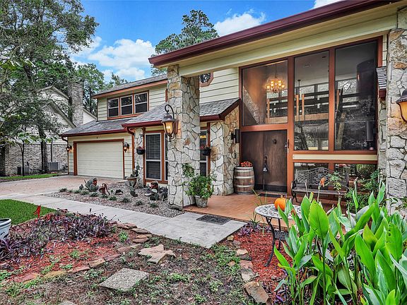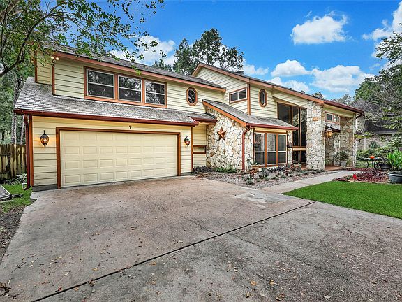 Come see this centrally located home in the heart of The Woodlands on a highly desirable family friendly cul-de-sac lot w/easy access to all the fantastic amenities of The Woodlands and no rear neighbors.Many unique features are offered in this beautiful home.This spacious floorplan features a soaring 2-story entry, breakfast area w/custom wood plank ceiling, and the living room has a gorgeous wall to wall wood & stone fireplace w/a wall of windows offering abundant natural light & great view of the spacious and private backyard w/pool.Relish in the Primary suite w/gas log fireplace & Primary bath w/walk-in closet, double sinks, huge 2 person garden tub, & separate shower. 2 Secondary bdrms upstairs offer a loft & share a Jack & Jill bathroom. 3rd bdrm upstairs features a built-in desk. The backyard is completely fenced w/pool.Lots of room for pets or children to run and play.Highly rated CISD schools.Fabulous lot in a fabulous location, and ready for some updating; priced accordingly.