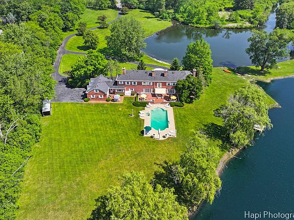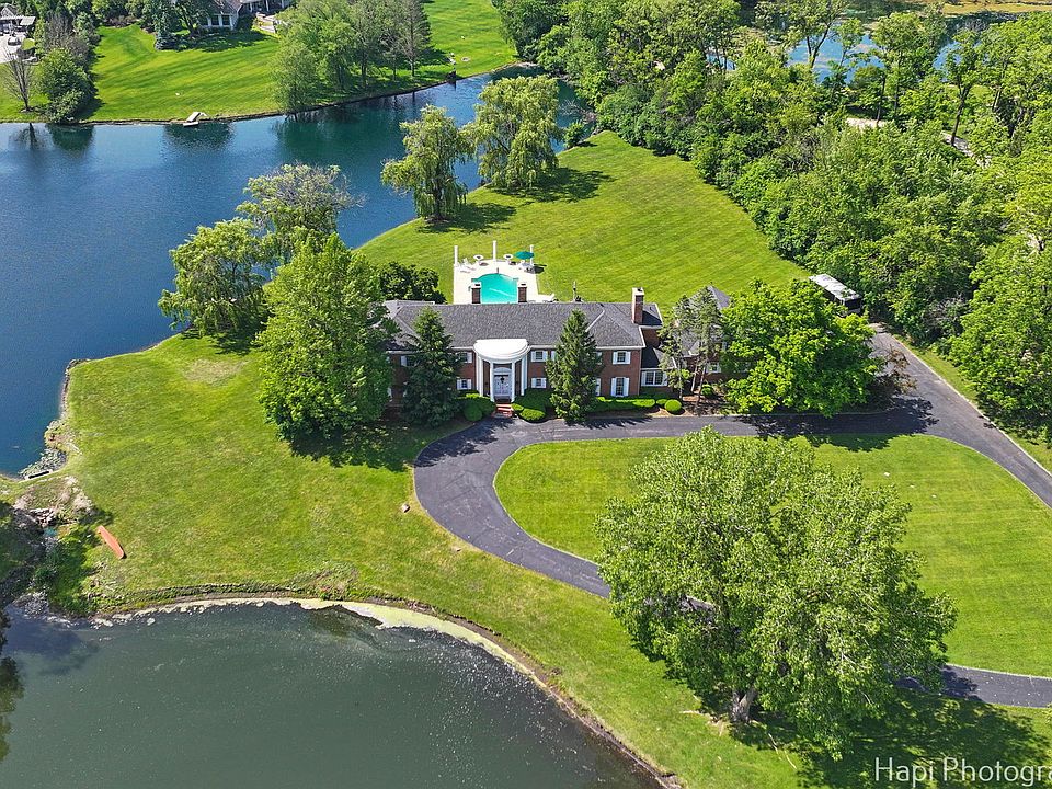 Welcome to your private oasis in prestigious Barrington Hills. Set on one of the most amazing & breathtaking private lots, this extraordinary estate offers a rare blend of timeless elegance, refined living, and natural beauty. Surrounded by three private lakes, this home is a peaceful retreat where every detail has been thoughtfully designed for comfort, luxury, and lifestyle. From the moment you enter, the grand foyer with Carrera marble flooring and a dramatic spiral staircase sets the tone for what lies ahead. The main level boasts 10-foot ceilings and crown molding throughout, enhancing the home's spacious and sophisticated feel. Perfect for entertaining or everyday living, the home includes a magnificently scaled living room and dining room, each with sweeping views of the manicured grounds. The kitchen overlooks the pool and lakes and is equipped with granite countertops and a spacious butler's pantry, conveniently located off the gracious dining room and breakfast area. Enjoy the warmth and ambiance of four beautiful wood-burning fireplaces located throughout the home, including one in the richly appointed oak-paneled library-complete with custom built-in bookcases. French doors lead from the library to a gracious patio and a gorgeous 50x20 heated swimming pool, creating a seamless connection between indoor and outdoor living. The beautiful waterfronts provide an amazing backdrop to the spectacular exterior entertainment area. The residence features five expansive bedrooms, including a luxurious primary suite with separate bathrooms and dressing rooms, large custom closets, built-ins, Carrera marble finishes, and even a private sauna-your own spa-like sanctuary. This lovely home has a full attic with walkup staircase & offers endless possibilities for future expansion. Set on private lot at the end of a cul de sac with a grand driveway to the home. A gently rolling landscape, mature trees and panoramic lake views, truly make this a magnificent location. This home offers exceptional privacy and tranquility while being just minutes from downtown Barrington, Metra, top-rated schools, equestrian trails, and major highways. This one-of-a-kind estate offers everything you could imagine in luxury living-location, space, style, serenity, and timeless quality. Don't miss this extraordinary opportunity to own one of the most stunning properties in Barrington Hills. Adjacent vacant lot is also available to expand and create a 10 acre estate.