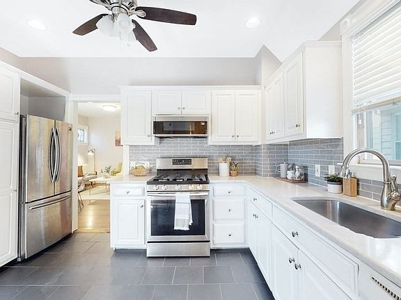 Situated on a quiet tree-lined street, just two blocks to the new Gilman Square green line station and Somerville Community Path, lies a gorgeous deleaded 1st floor condo that perfectly balances classic Somerville character with modern finishes. This 2 bed 2 bath condo features a recently updated kitchen and bathrooms, in-unit laundry, hardwood flooring, soaring ceilings, generous storage and abundant natural light. The beautiful kitchen boasts quartz countertops and stainless steel appliances. The additional finished basement space can be used as an office, media center, guest bedroom, extra living space, or all of the above! One off-street parking space is deeded with the unit in the driveway. Additional features include a Nest Thermostat, Schlage Keyless Entry, a shared outdoor patio and yard, and basement storage. Just steps from local favorites including Highland Kitchen, Sarma, Tipping Cow Ice Cream, and Neighborhood Produce.