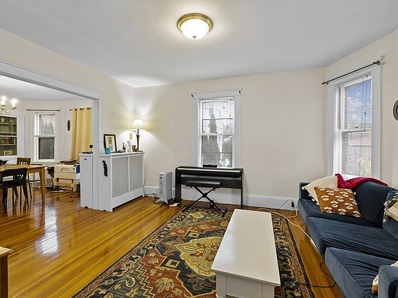 Charming two-family in the heart of Brighton on a tree lined street, with a short walk to Oak Square. Both 2 bedroom + study/home office, 1 bath units boast hardwood floors throughout, eat-in kitchens, gas cooking, pantries leading to living/dining rooms, with front/rear decks. Walk up attic with great potential for expansion. Views of Boston Skyline from the third floor. With study, the units could easily be used as three bedrooms. Both the roof and furnaces are approximately 13 years old. Additional storage and Washer/Dryer in the basement. Conveniently located near Oak Square stores, restaurants and the YMCA with easy access to the Mass Pike, the Charles River, Storrow Drive with less than a 5min walk to the express Harvard Square red line to downtown Boston.