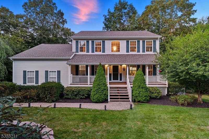 Pride of ownership shines throughout this beautifully maintained and thoughtfully updated colonial! Ideally located in a cul-de-sac just minutes to Route 80 and Lake Hopatcong, this home offers both privacy and convenience making it a true commuter's dream. From the moment you arrive, the curb appeal is undeniable. Impressive landscaping and a welcoming front porch invite you in to enjoy the serene setting and natural beauty that surrounds the property. Step inside to a dramatic two-story foyer that leads into the heart of the home, a spacious family room and an updated kitchen designed with both style and function in mind. The kitchen features quartz countertops, a large center island, high-end stainless appliances, and gorgeous tile flooring, flowing seamlessly into the sunken living room with soaring ceilings, the perfect space for entertaining or relaxing. Upstairs you'll find four generously sized bedrooms and two full baths. The primary suite feels like a retreat, with vaulted ceilings, a walk-in closet, and a spa-like bath complete with jetted tub and dual vanity. The fully finished walkout basement is an entertainer's dream, offering hardwood floors, intricate LED lighting, surround sound, a bar, and endless space for recreation, entertaining, or hobbies. Set on a large, private lot with outdoor space to match, this home blends comfort, convenience, and luxury; move-in ready and waiting for its next owner!