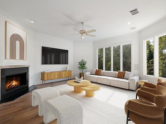 Live among the treetops in this exclusive gated enclave, nestled in the heart of Rollingwood and feeding into top-rated Eanes ISD schools. This beautifully updated residence offers the perfect blend of privacy, elegance, and convenience just minutes from Downtown Austin, Zilker Park, Barton Springs, and premier shopping and dining. Step inside to a bright, open floor plan with fresh interior paint and newly installed white oak wood flooring that spans the main living area. French doors open to an expansive wraparound terrace, perfect for morning coffee or sunset entertaining, complete with a spiral staircase leading to the serene, tree-lined backyard and lower covered patio. The spacious living room features a cozy fireplace and flows seamlessly into the dining area and kitchen, which boasts granite countertops, stainless steel appliances, a peninsula with bar seating, and a built-in wet bar. The versatile downstairs level includes two private bedrooms, two full baths, and a generous flex space ideal for a home office, playroom, gym, or game room. Upstairs, the primary suite is a true retreat with treetop views, its own fireplace, dual walk-in closets, and a luxurious ensuite bath with a soaking tub, walk-in shower, and double vanity. Located in a private, 22-home community designed for easy lock-and-leave living, this home offers a rare opportunity to enjoy low-maintenance luxury in one of Austin’s most coveted neighborhoods.