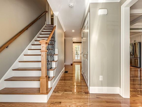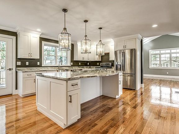 Burlington Line! Rare offering for a RH Richard Construction design offers over 3000 square feet of living space and is filled with many quality upgrades and materials. This Energy Efficient New Construction Colonial with Great Room defines elegance and sophistication. Entering through the front door you will be graced with gleaming hardwood floors. Follow the hallway into the well-equipped gourmet kitchen with GE Profile appliances allows you to entertain while preparing for your gathering. The Formal Dining room boasts beautifully crafted Coffered ceilings, wainscoting and Crown molding. Located on the main floor with no stairs you enter into the Great room one will immediately notice the dramatic Cathedral ceiling and the floor to ceiling stone fireplace. The 1st floor also affords a Formal Living room and an office. The 2nd floor allows for 3 well-sized bedrooms, a laundry room, and a Master Suite complete with walk-in closet and elegant Master bath.