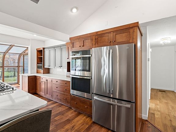 Exceptional ranch in a cul-de-sac neighborhood with beautiful green space! Owners completed a full kitchen remodel—quartz counters, custom cabinetry, and a stunning center island are just some of the highlights. They also updated flooring, painted, and created inviting outdoor spaces. Enjoy single level living with vaulted ceilings, walls of windows, and an open floor plan. The kitchen flows into a sun-drenched solarium with daily feathered visitors. Spacious dining room, living room with gas fireplace, sweet mudroom nook, and garage access make entertaining easy. Three bedrooms, including a master with private bath and WIC, plus a second full bath complete this level. Lower level offers a family room, craft/laundry room, office potential, and walk-in storage. Outside: new composite deck, large flat lot, mature plantings and oversized shed make this home special. 7 Turnbuckle is a wonderful place to call home!