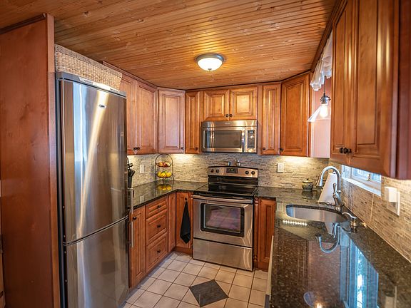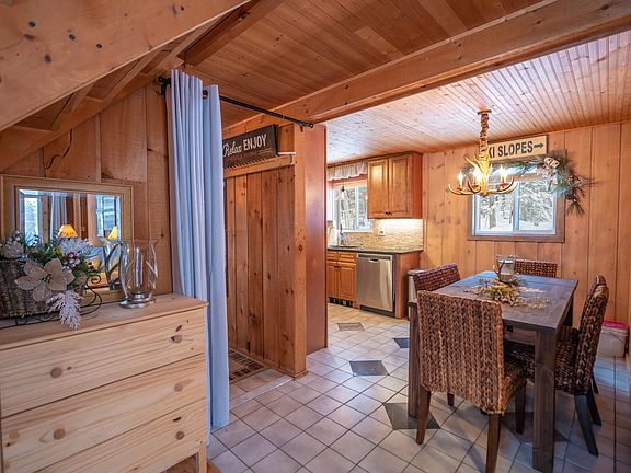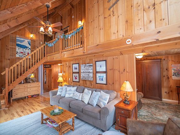 When you picture a rustic and woodsy Vermont retreat, but with modern comforts, this is that home. Charming chalet style home located conveniently towards the bottom of Chimney Hill, just a short drive from the village of Wilmington and Mount Snow Ski Resort. This 4 bedroom, 2 bath home has exposed natural woodwork throughout, great open concept living space with a large great room with vaulted ceilings and gas fireplace hardwood floors, beautiful natural light, exposed beams, a newly updated kitchen with granite counters, stone backsplash, and stainless appliances, tremendous entry mudroom for gear with new washer/dryer, a large main floor suite that can also be used for overflow living space, 3 vaulted bedrooms upstairs, 2 updated baths, and less obvious features including a new roof, new skylights, many updated windows, new front door, newly insulated crawlspace with vapor barrier, fresh paint on the exterior, expanded lawn, and resurfaced driveway, The home has plenty of room to stretch, without being too much to maintain, yet is a private location with direct snowmobile trail access. Enjoy a quick drive to skiing, or on off-days take a jaunt to the clubhouse with indoor and outdoor pools, hot tub, gym, game room, theater, basketball court, tennis court, and more. Chimney Hill offers convenient a la carte amenities including trash, plowing, lawn care, and more, to ensure that your time spent in Vermont is for downtime, not upkeep.