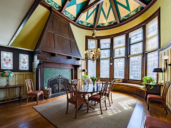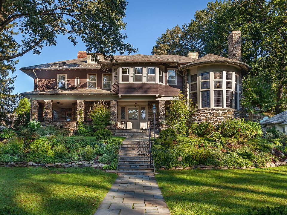 A turn-of-the-century masterpiece comes on the market with all the attention it deserves! This magnificent 1902 stone and shingle manse by renowned Bronxville architect William Bates showcases his flair for the dramatic and the exquisite craftsmanship of the Gilded Age. The home's centerpiece is the 2-story great room with sweeping staircase and imposing fireplace, crowned by a Tiffany-style stained glass skylight. The extraordinary 2-story dining room is the piece de resistance, featuring a curved wall of leaded and stained glass windows, decorative painted ceiling, grand fireplace, and charming minstrel's gallery. Wow! With all its splendor, this is still a home for today's lifestyle, with a handsome living room, adjacent music room, beautifully paneled library, large eat-in kitchen, butler's pantry, sunroom, wraparound porch, and luxurious master suite. Ideally located in the historic Lawrence Park neighborhood, the property is a 2-minute walk to the train, school, and shops.