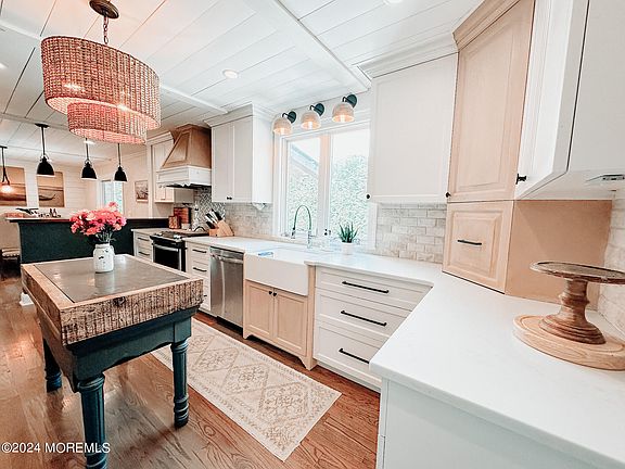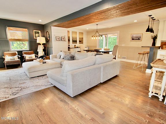 SHARK RIVER HILLS Stunning 4 Bdrm Home designed to offer convenience and functionality. The impressive open concept Great Room features the beautiful wood floors that continue throughout the entire home. Fireplace salvaged from a Victorian home, attractive built in storage, Dining Room, sliders to deck, and flows to the fully equipped kitchen with breakfast bar and work Island. Primary bedroom suite boasts vaulted ceiling, balcony w/ water views, office or nursery, walk-in closet and sumptuous bath complete with dual vanity, free-standing tub, luxe shower, and underglow lighting.Laundry on 2nd floor & additional hookup in the mudroom off the garage. 1st floor bonus room for work or play. Outside oasis covered porch w/outdoor kitchen, Inground mineral pool, extensive paver patio, fire pit. House Updates -new roof (2018) -new windows (2017) -new glass sliding door (2017) -paver front patio (2018) -lower paver patio (2016) -upper covered patio (2018) -in-ground pool (2023) -build in fire pit with wall (2022) -two new furnaces (2018) -new air conditioner condenser (2018) -gas fireplace insert (2024) -antique renaissance mantle (2024) -new custom kitchen (2017) -fence around property (2016) -refrigerator (2023) -outdoor kitchen (2020) -wood burning pizza oven (2020) -outdoor heater (2021)