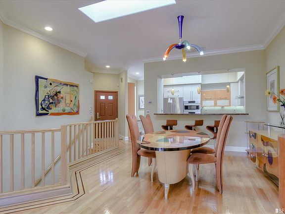 Stunning bright fully remodeled with custom hi-end finishes 3bd/2.5ba townhome w/view, balcony & patio in Terrabay Village Community! 1st main level: Formal Entry with closet & 1/2 remodeled bath with custom vanity. Elegant Open floor plan living/dining room combination w/high ceiling, hardwood floors skylight, balcony & view of Bay & Valley. Dining room opens to large modern state-off-art remodeled kitchen with granite counter top, breakfast bar, stainless still appliances & skylight. Spacious master bedroom has view of the Bay & Valley. Modern Master bath with double sink, 2 closets, stall shower, separate room with washlet toilet, tiled walls/floors, & skylight. Downstairs level: 2 good size bedrooms & large common beautifully remodeled full bathroom with tub & tile walls & floors. One of the bedroom has sliding door to landscaped fenced patio. Laundry room & enormous separate storage room complete this level. 2-car s/s garage with ample storage. The furniture has been removed.