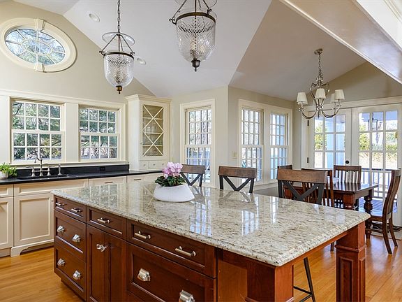 - Features: Vaulted Ceiling(s), Closet/Cabinets - Custom Built, Flooring - Hardwood, Dining Area, Pantry, Countertops - Stone/Granite/Solid, Countertops - Upgraded, French Doors, Kitchen Island, Cabinets - Upgraded, Deck - Exterior, Exterior Access, Open Floorplan, Recessed Lighting, Remodeled, Stainless Steel Appliances, Lighting - Pendant