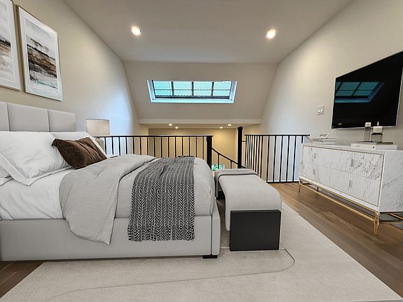 Large bedroomsRecessed lightingHigh ceilingsDining areaCustom cabinetsQueen sized bedGorgeous hardwood floors