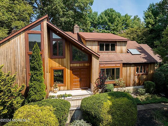 One-Of-A Kind Peaceful Sanctuary! Nestled atop a picturesque hill, you'll discover this unique custom home by Noboru Kobayashi, the award winning architect. This custom designed contemporary home is the epitome of privacy & tranquility. Upon entering you will be drawn to the beautiful natural light & an array of diverse living spaces, each thoughtfully designed to cater to various needs & preferences. The expansive & flexible floor plan offers hardwood floors & features a light-filled Living Room with tray ceiling, Dining Room, Family Room with wood-burning fireplace & a serene Sunroom. Spacious Chef's Kitchen boasts a Lacanche custom stove, stainless steel appliances, large center island, eat-in area & access to private outdoors ideal for entertaining. Primary Suite features walk-in closet, sauna & Primary Bath with marble accents, glass enclosure shower & soaking tub. The 2nd floor features 4 bedrooms, 3 full baths, loft & ample living spaces/options to suit any of your specific lifestyle needs. Rear staircase leads to an Office/Meditation Room & a private Library/Office overlooking the grounds. Finished Lower Level includes ample living space with wall-to-wall carpeting & storage options. The outdoor retreat is not to be missed, complete with in-ground pool, deck, patios & beautiful gardens. Don't miss this rare opportunity to acquire a truly unique property with abundant privacy & serenity. Conveniently located near iconic Bell Works, MSK, PNC Arts Center, NYC transportation, beautiful parks & Jersey Shore beaches.
