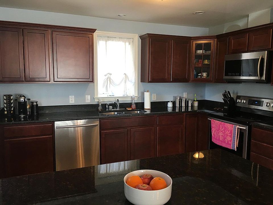 Beautiful and spacious townhouse for rent on Needham Center. Conveniently located to the commuter rail, I-95, walking distance to the local post office, local restaurants, local shops and the grocery store. This beautiful updated townhouse has an open kitchen/living room/ dinning room concept on the first level and office or 4th bedroom 1/2 bath is located in this level. Master bedroom and master bath is located on the 2nd floor along with the a second spacious bedroom with closets and ensuite bathroom. A generous third bedroom it's located on the 3rd floor with ensuite bathroom. A finished basement with a full bathroom is a plus for additional living space. Features: in house washer and dryer, and off street parking for 3-4 vehicles. Owner prefers a long term lease, minimum of one year. Move in cost: First month, Last month, Security deposit and broker fee.