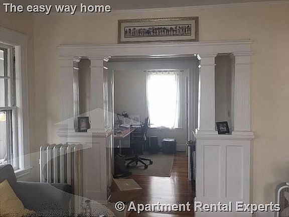 Located in the Teele Square area of Somerville. 3+ bedroom / 1 bathroom apartment on thSpacious 8 room apt located on 2 top levels of 2 unit house. On the second floor: mod eat-in kitchen (dishwasher, disposal, gas stove), dining room, living room, two bedrooms, large alcove/study, bathroom, enclosed front sunporch, and open back porch. Stacked washer and dryer in unit On the third floor: a private staircase leads to a large skylighted contemporary top floor bedroom, study area, and additional room. High ceilings and beautiful hardwood floors throughout. There are charming original details such as crown molding, built-in china cabinet, fluted columns, etc. Lots of large windows create incredible natural light throughout the day and sunsets. There is a patio-styled small backyard space. Parking is included in a shared driveway, and on-street resident/visitor parking is also usually available on this small tree-lined side street where most of the residents park in their driveways. Quick less than mile walk to Davis Sq, Red Line, or Tufts, etc. Must See! Incredible rent of $2750/month to the right renters, one year lease, one month's security deposit. Gas heat. Available September 1, 2021. No utilities. No fee. Call or text Barbara Smith 781.698.8088. Great apt, must see.e 2nd and 3rd floors of a two-family with a living room and formal dining room. Eat-in kitchen with a gas stove, dishwasher, disposal, and refrigerator. Laundry is conveniently located in the unit. Three off street parking spots are included. Cats are allowed. (Reference #173166)